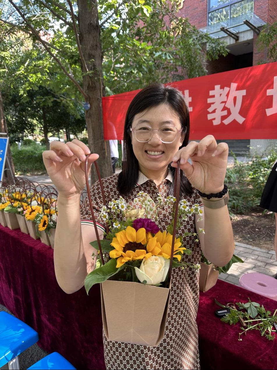 插花结束后,老师们还收到了学院的准备小礼物。“浪漫与实用都考虑到了,学院真是用心,这个教师节过得真开心!”