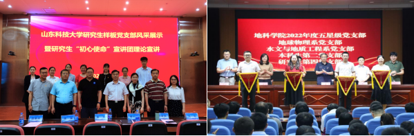 研究生样板党支部风采展示(左)五星党支部授予锦旗(右)